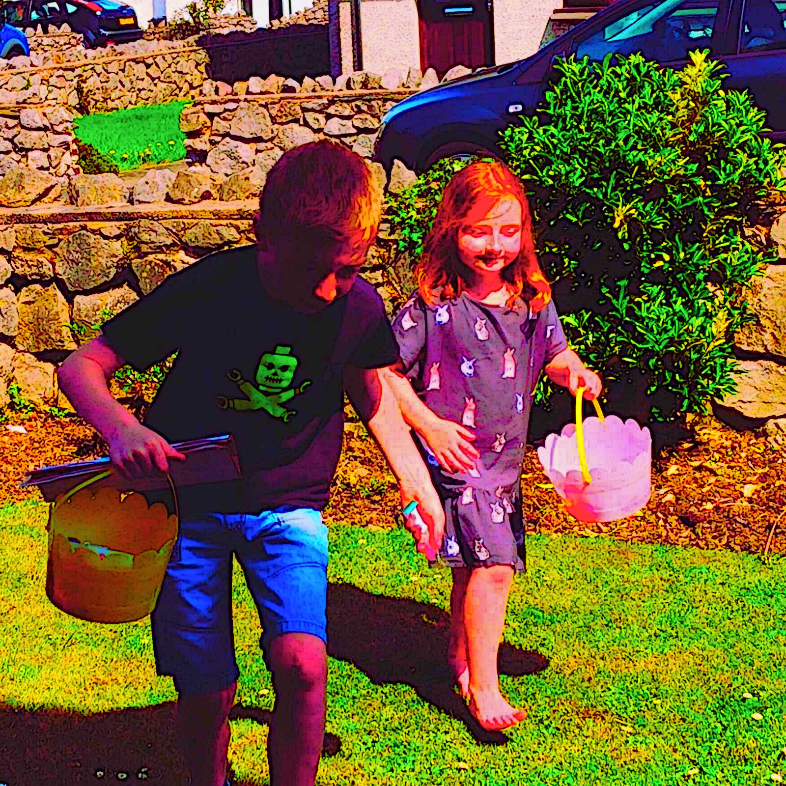 The Kiddo’s in the sun having treasure map fun