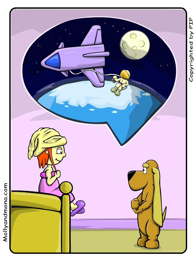 Molly had her own reasons for wanting to travel into outer space, which she said were to collect space particles, measure solar radiation levels and eat as many cookies as possible in zero gravity before being sick. But all I wanted do was see if I could find my house from space.